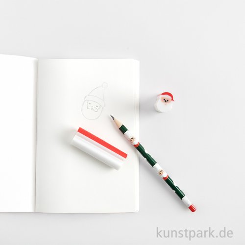 Feiere die Weihnachtszeit mit unserem Weihnachtsmann Radiergummi: Klein, niedlich und praktisch macht er das Radieren zum Vergnügen. Hol Dir diesen festlichen Begleiter und lass Fehler einfach verschwinden!