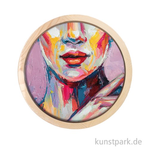 Keilrahmen mit Leinwand + Bilderrahmen, Rund, Naturholz