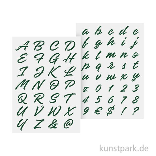 Dekorative Groß- und Kleinbuchstaben als Schablonen Set mit Zahlen und Sonderzeichen. Die hochwertigen QBIX Schablonen sind aus 0,3 mm semitransparentem Mylar-Kunststoff lasergeschnitten. Sie sind flexibel, langlebig und für alle Farben geeignet.