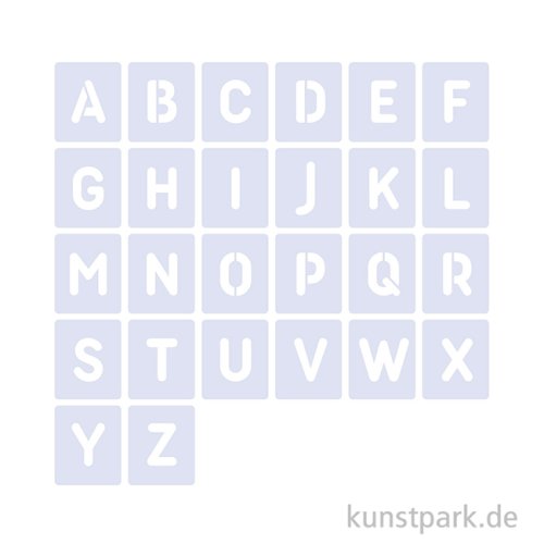 Das komplette Alphabet als Schablonen Set mit 26 Großbuchstaben! Die hochwertigen QBIX Schablonen sind aus 0,5 mm semitransparentem Mylar-Kunststoff lasergeschnitten. Das Kunststoffmaterial ist flexibel, langlebig und für alle Farben geeignet.