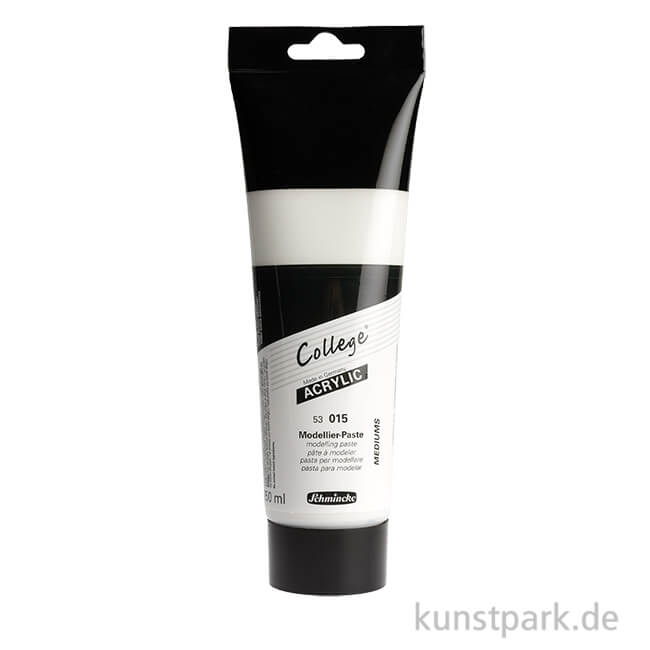 Die COLLEGE Modellierpaste von Schmincke ist eine weiße, stark pastose Acrylpaste, die sich ideal zum Modellieren von Strukturen mit feiner bzw. glatter Oberfläche auf starren Untergründen eignet. Du kann sie einfach mit Acryl einfärben oder übermalen.