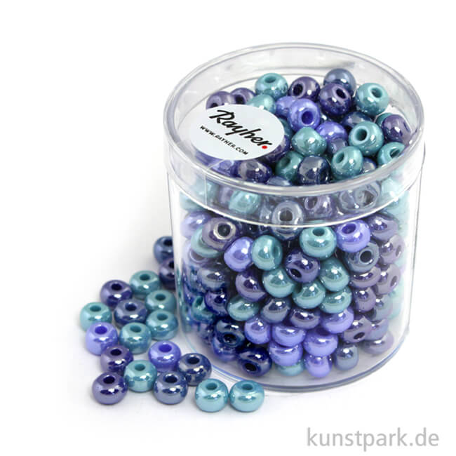 Infos über Glas-Großlochradl Blau-Türkis Mix, opak, 55 g