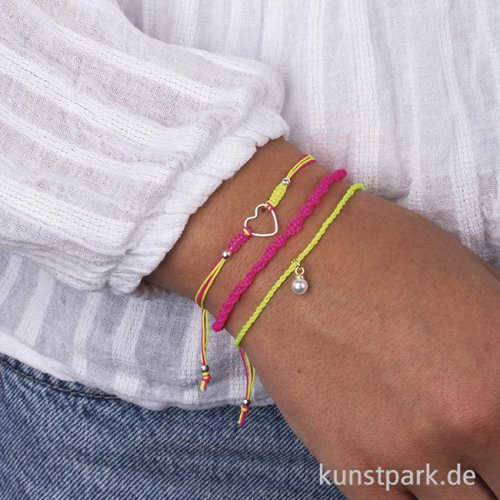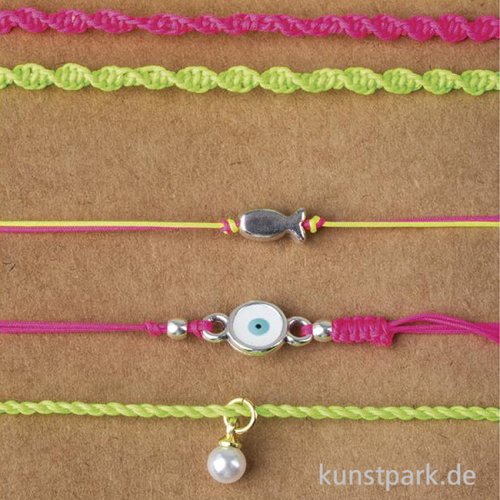 Mit diesen feinen Schmuckkordeln gestaltest Du individuelle Lieblingsstücke. Die Schmuckbänder eignen sich ideal zum Knoten, Flechten und Auffädeln. Das Set enthält 4 knallige Farben (je 5 Meter). Gestalte individuelle Armbänder, Ketten und vieles mehr!