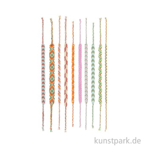 Gestalte ganz persönliche Freundschaftsbänder! Mit den 10 leuchtenden Garnfarben knüpfst Du bis zu 7 einzigartige Armbänder für Dich und Deine Lieblingsmenschen. Anleitungen für 10 Knüpfmuster und ein Video-Tutorial begleiten Dich Schritt für Schritt.