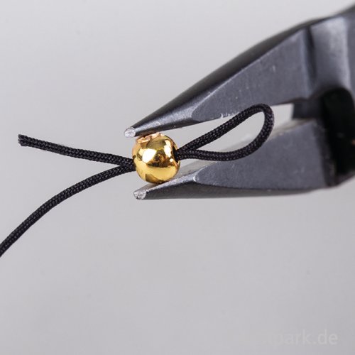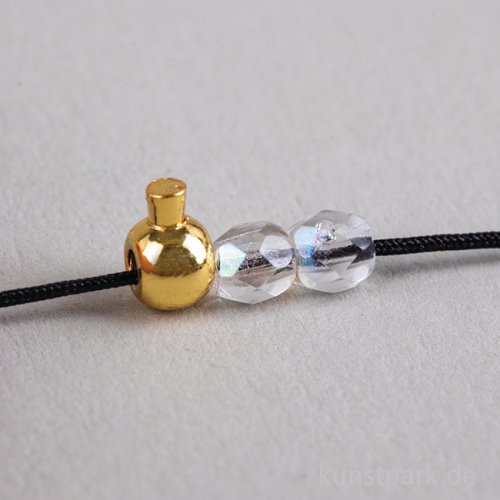 Edle Quetschperlen zum Fixieren von Verschlüssen, Perlen oder Charms. So geht's: Einfach Faden oder Draht durch die Öffnung fädeln und an der gewünschten Position mit einer Flachzange den Steg zusammendrücken. Fertig!