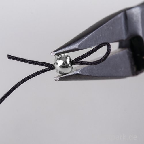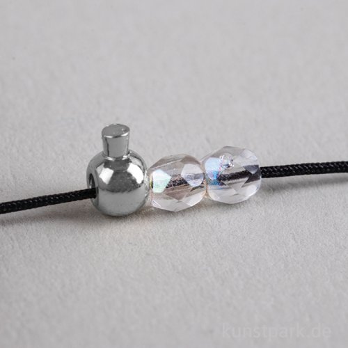 Edle Quetschperlen zum Fixieren von Verschlüssen, Perlen oder Charms. So geht's: Einfach Faden oder Draht durch die Öffnung fädeln und an der gewünschten Position mit einer Flachzange den Steg zusammendrücken. Fertig!