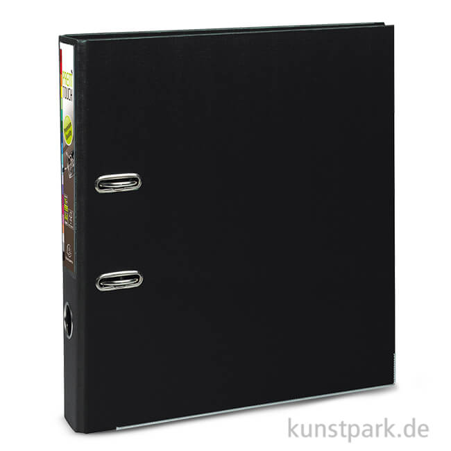 Farbenfrohe Ringbuchordner mit Hebelmechanik. Er ist in 2 verschiedenen breiten erhältlich und verfügt über eine transparente Tasche für Rückenschilder.