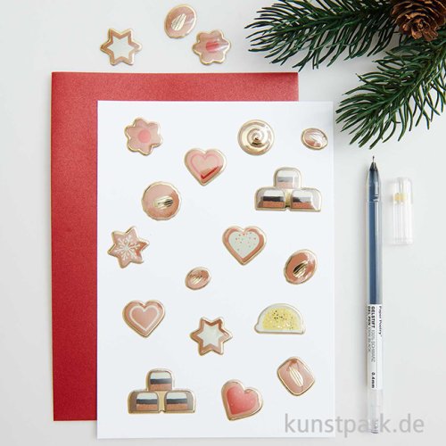 Weihnachtliche Puffy Sticker mit zuckersüßen Plätzchen Motiven. Die dekorativen Aufkleber eignen sich wunderbar zum Verzieren von Karten, Geschenken, Journals und Scrapbooks. Ein Bogen enthält 24 Aufkleber.