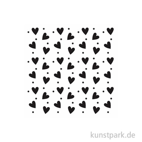 Ein liebevolles Herz Muster schmückt diese 12 x 12 cm große Schablone aus flexiblem Kunststoff. Mit ihrer Hilfe kannst Du das Design in Deinen Lieblingsfarben auf nahezu jede Oberfläche übertragen.