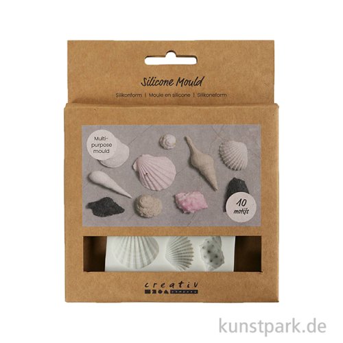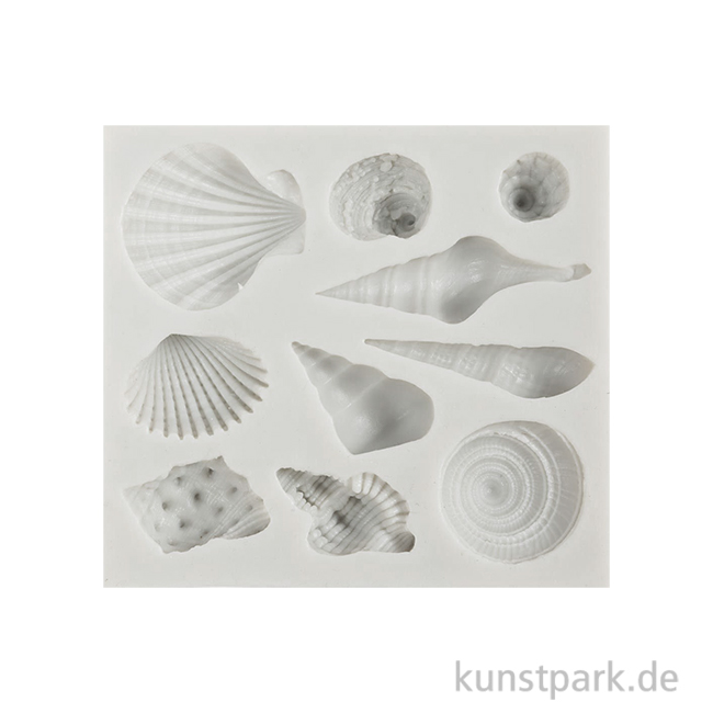 Eine moderne Muschel Gießform aus flexiblem Silikon, die sich für zahlreiche Gießmassen wie Gips, Beton, Resin, Seife und Wachs eignet. Die haltbare Silikonform lässt sich leicht reinigen und beliebig oft wiederverwenden.