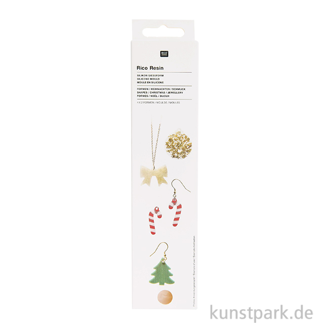 Die hochwertige Silikonform von Rico Design eignet sich ideal zum Ausgießen mit Resin, aber auch für andere Gießmassen wie Gips oder Schmuckbeton. Das weiche Silikon ist leicht entformbar und langlebig. So kannst Du viele schöne Weihnachtsanhänger gießen.