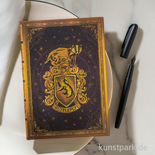Bist Du ein Hufflepuff? Das zauberhafte Hogwarts Design dieses originellen Paperblanks Notizbuchs ist von der magischen Harry Potter Welt inspiriert. Mit Lesebändchen, Innentasche und 144 Blanko Seiten bietet es viel Platz für Ideen.