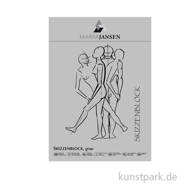 Grauer Skizzenblock mit 110 g/m² schwerem Papier. Die raue Oberfläche eignet sich fabelhaft für Graphit- oder Kohle-Zeichnungen. Du kannst zwischen drei Größen wählen.