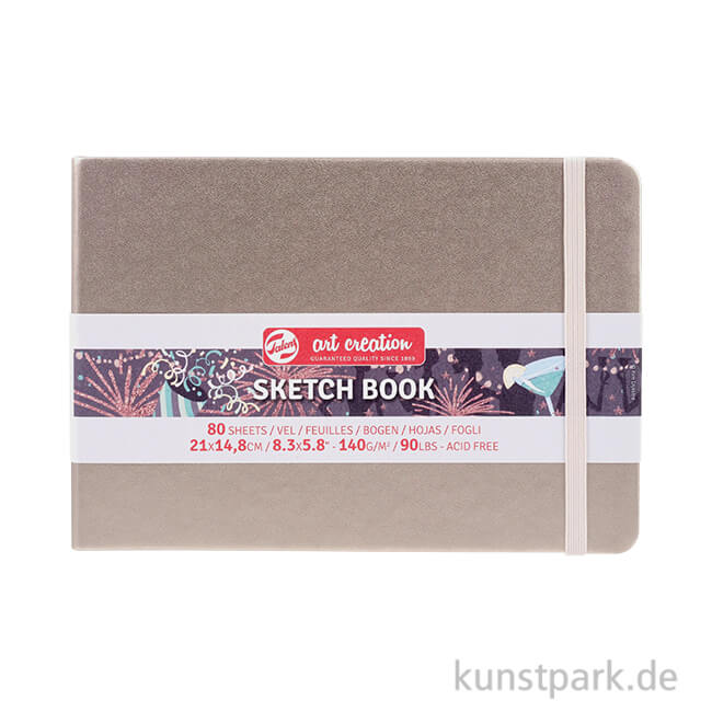 Elegant schimmerndes Softcover-Skizzenbuch von Talens Art Creation für viele Trockentechniken. Der farblich passende Gummiverschluss sorgt für einen sicheren Transport. Durch die hohe Grammatur von 140g kannst Du es auch bei Aquarelltechniken einsetzen.
