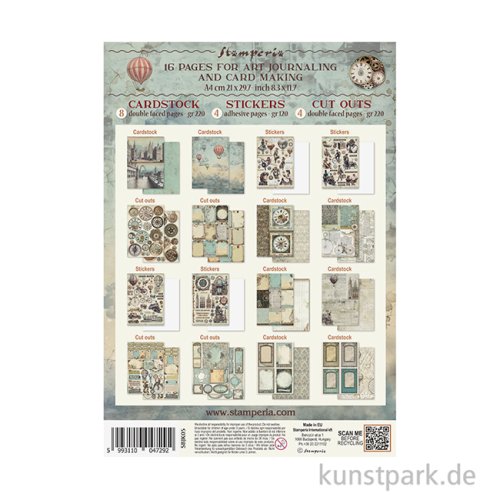 Mit dem großen Junk Journal Set von Stamperia kannst Du zauberhafte Karten und Journals kreieren. Es enthält 16 Blatt mit Vintage Hintergründen, Cut Outs und Stickern. Die Motive sind perfekt aufeinander abgestimmt. Gestalte Dein Journal!
