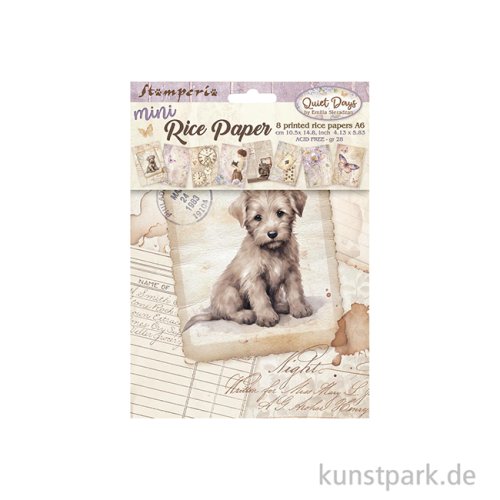 Romantische Motive zieren diese zarten Vintage Reispapiere. Die 8 verschiedenen Designs eignen sich wunderbar dazu, beliebige Oberflächen zu verschönern. Dazu brauchst Du nur etwas Decoupage Kleber.