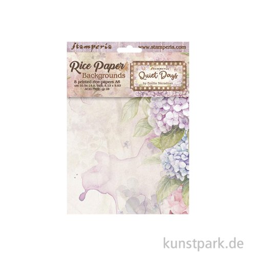 Romantische Muster zieren diese zarten Vintage Reispapiere. Die 8 verschiedenen Hintergründe eignen sich wunderbar dazu, beliebige Oberflächen zu verschönern. Dazu brauchst Du nur etwas Decoupage Kleber.