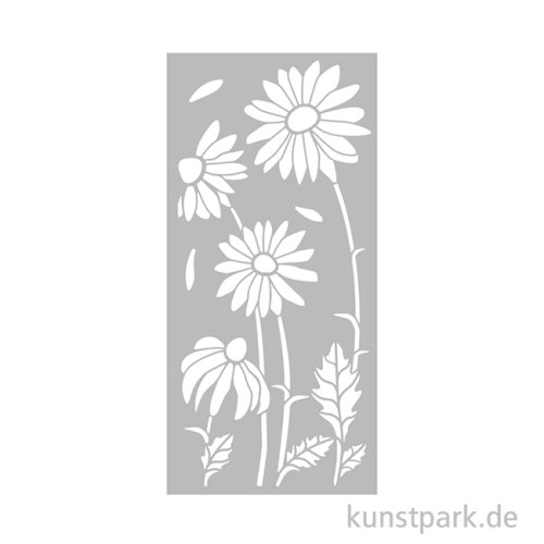 Hübsche Blumen schmücken diese 12 x 25 cm große Schablone aus flexiblem Kunststoff. Mit ihrer Hilfe kannst Du das Design in Deinen Lieblingsfarben auf nahezu jede Oberfläche übertragen.