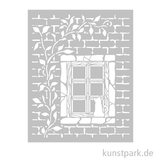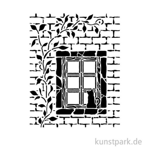 Ein verträumtes Fenster ziert diese 20 x 25 cm große Schablone aus flexiblem Kunststoff. Mit ihrer Hilfe kannst Du das Design in Deinen Lieblingsfarben auf nahezu jede Oberfläche übertragen.