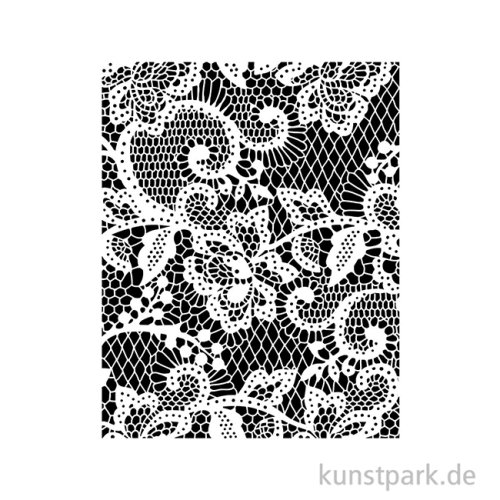 Ein florales Spitzenmuster ziert diese 20 x 25 cm große Schablone aus flexiblem Kunststoff. Mit ihrer Hilfe kannst Du das Design in Deinen Lieblingsfarben auf nahezu jede Oberfläche übertragen.
