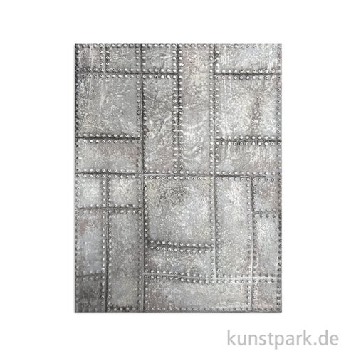 Eine flexible Gießform mit einer Metallplatten Textur, inspiriert von Steampunk. Du kannst das Muster dreidimensional ausgießen oder in eine Modelliermasse hinein prägen. Die Soft Mould Form ist für diverse Gieß- und Modelliertechniken geeignet.