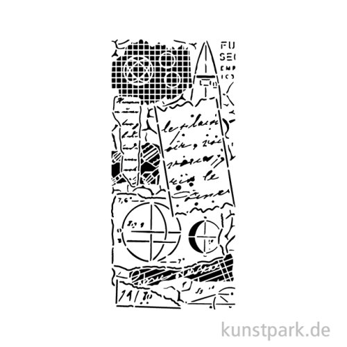 Diverse Notizen und Entwürfe ziese 12 x 25 cm große Schablone aus flexiblem Kunststoff. Mit ihrer Hilfe kannst Du das Design in Deinen Lieblingsfarben auf nahezu jede Oberfläche übertragen.