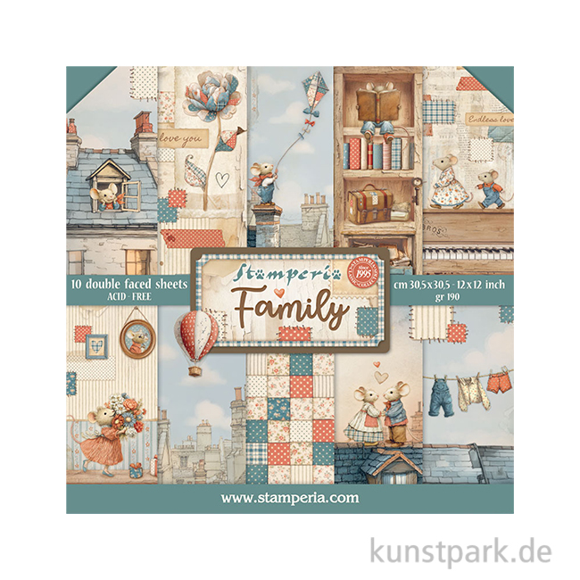 Eine ganze Mäusefamilie: Der 30,5 x 30,5 cm große Block enthält 6 beidseitig bedruckte Scrappapiere mit zauberhaften Vintage Motiven. Nutze die süßen Family Designs für Deine Scrapbooking-Projekte und kombiniere sie mit tollen Embellishments.
