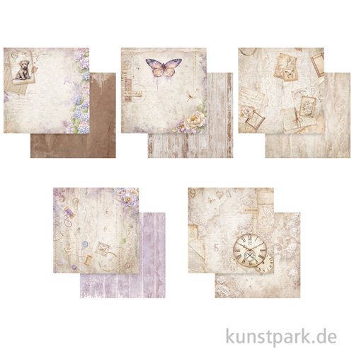 Der 20,3 x 20,3 cm große Block enthält 10 beidseitig bedruckte Scrappapiere mit romantischen Vintage Motiven. Nutze die Designs für Deine Scrapbooking-Projekte und kombiniere sie mit tollen Embellishments.