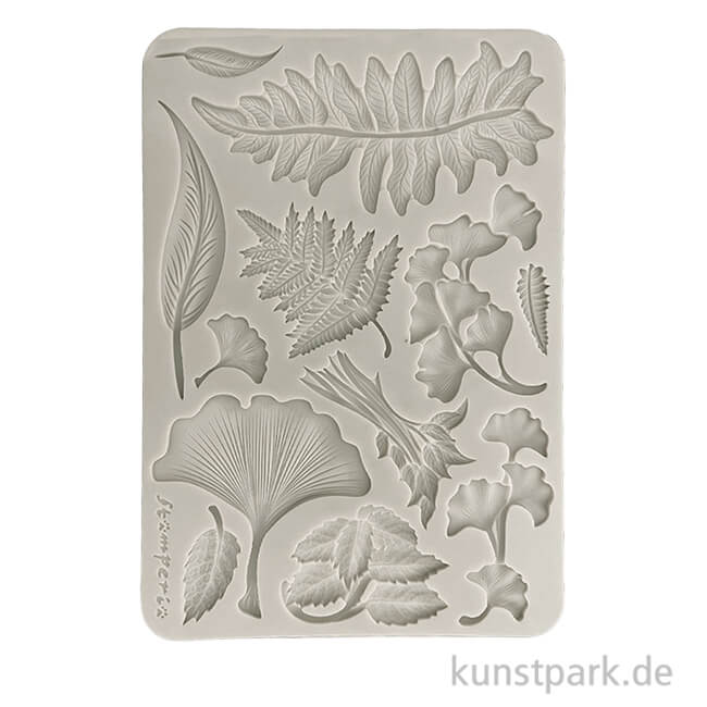 Eine flexible Silikonform mit filigranen Vintage Blätter Designs. Du kannst die einzelnen Motive dreidimensional ausgießen oder in eine Modelliermasse hinein prägen. Die Form ist für diverse Gieß- und Modelliertechniken geeignet.
