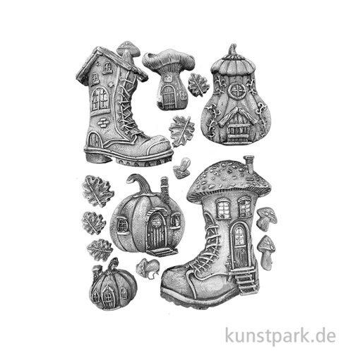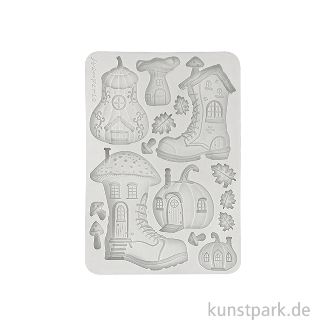 Eine flexible Silikonform mit herbstlichen Vintage Designs. Du kannst die einzelnen Motive dreidimensional ausgießen oder in eine Modelliermasse hinein prägen. Die Form ist für diverse Gieß- und Modelliertechniken geeignet.