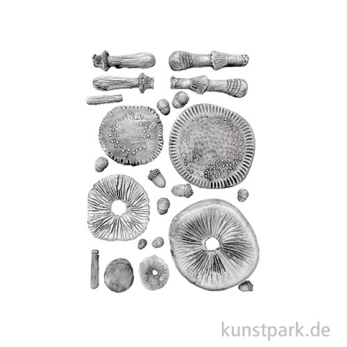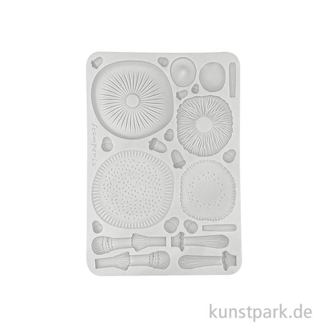 Eine flexible Silikonform mit herbstlichen Pilz Designs. Du kannst die einzelnen Motive dreidimensional ausgießen oder in eine Modelliermasse hinein prägen. Die Form ist für diverse Gieß- und Modelliertechniken geeignet.