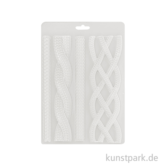 Eine flexible Gießform mit Vintage Seil Designs. Du kannst die einzelnen Motive dreidimensional ausgießen oder in eine Modelliermasse hinein prägen. Die Soft Mould Form ist für diverse Gieß- und Modelliertechniken geeignet.