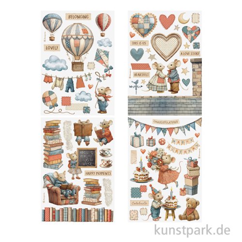 8 Bögen durchsichtiges Washi-Papier mit Vintage Motiven, die sich mit einem Cutter ganz präzise ausschneiden und auf beliebige Untergründe kleben lassen. Auf hellen Oberflächen erzielst Du besonders schöne Ergebnisse.