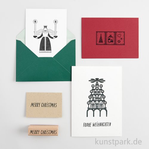 Eine festliche Weihnachtspyramide als hochwertiger Holzstempel. Überrasche Deine Liebsten mit liebevoll verpackten Präsenten und persönlich gestalteten Weihnachtskarten.