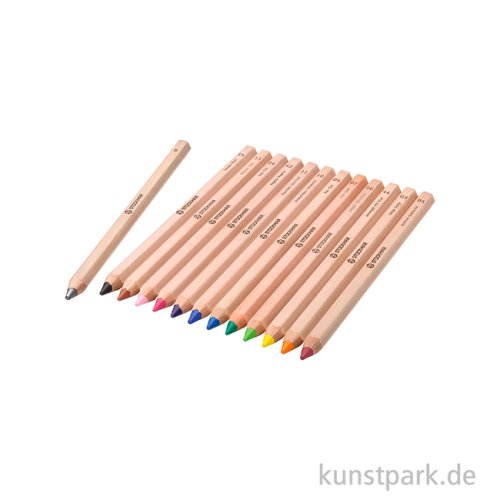 Buntstifte Set mit 12 holzgefassten Stiften in Sechseckform. Mit weicher Mine und kräftiger Farbabgabe - für leuchtende Ergebnisse auf dem Papier.