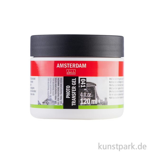 Wasserfestes Foto Transfer Gel, um Fotodrucke auf einen beliebigen Untergrund zu transferieren. Es lässt sich bei Laserdrucken und Fotokopien anwenden. Das Papier wird einfach auf der Druckseite mit dem Foto Transfer Gel vorbehandelt und dann aufgedrückt.