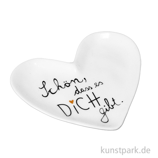 Schön, dass es Dich gibt! Auf diesem feinen Porzellanteller findet jede Kleinigkeit ihren Platz. Der kleine Herzteller ist liebevoll gestaltet und verschönert jedes Zuhause. Ein bezauberndes Kunsthandwerk Design von goold old friends.
