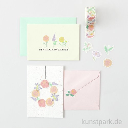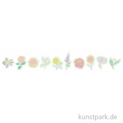 Hübsche, florale Washi Sticker aus Reispapier. Sie eignen sich wunderbar zum Verzieren von Karten, Geschenken, Journals und Scrapbooks. Die Rolle enthält 200 Sticker. Sie bleiben nach dem Aufkleben ablösbar und wiederverwendbar.
